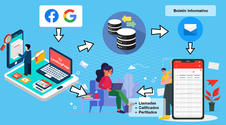 Google es por excelencia el motor de publicidad más efectivo hoy por hoy, así que usamos una estrategia unida a Facebook para llegar a más prospectos.